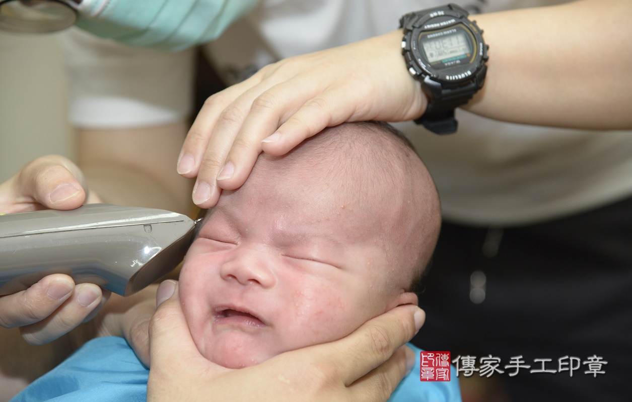 曾寶寶要開始剃頭囉, 剃頭象徵今天從頭開始、圓圓滿滿喔~