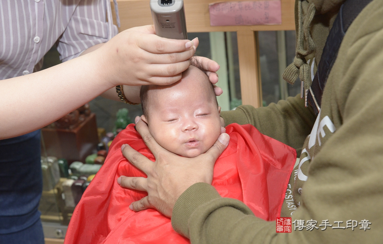 李寶寶要開始剃頭囉,剃頭象徵今天從頭開始、圓圓滿滿喔~