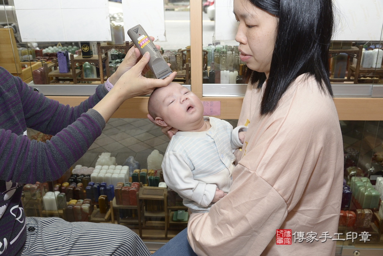 盧寶寶(龍鳳胎)要開始剃頭囉,剃頭象徵今天從頭開始、圓圓滿滿喔~