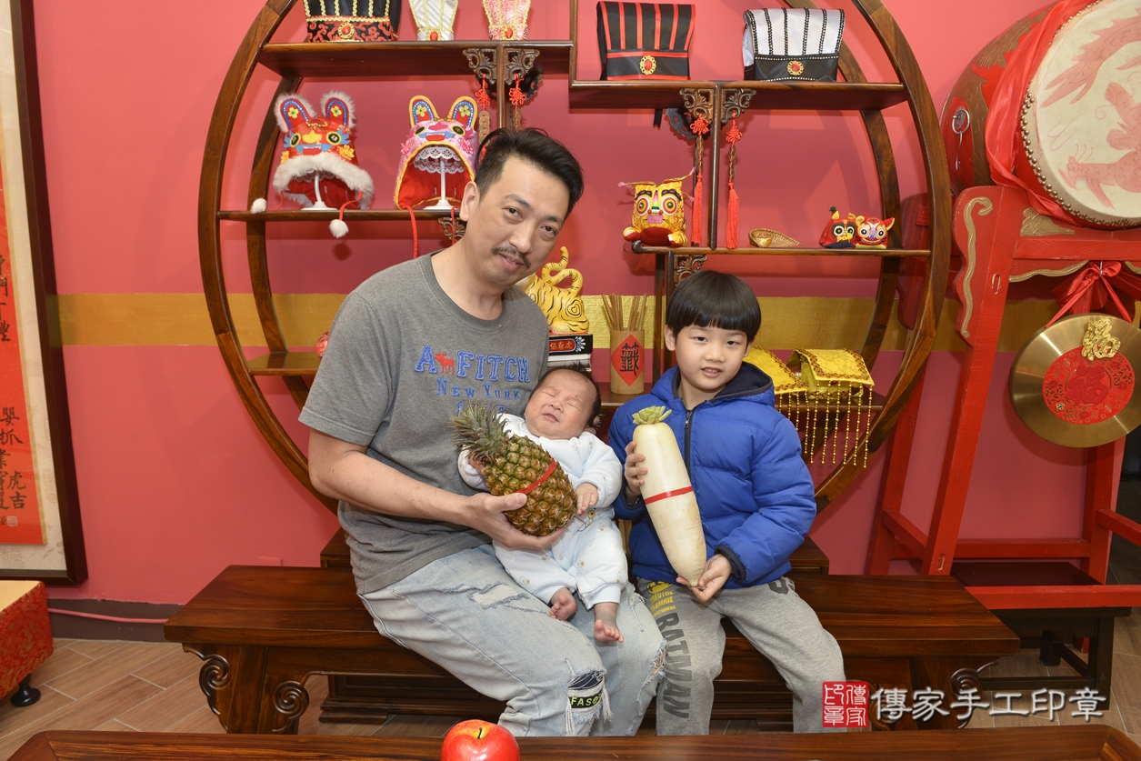 劉寶寶(新北市永和區嬰兒劉寶寶滿月剃頭理髮、嬰兒剃胎毛儀式吉祥話)。中國風會場,寶貝穿「日中韓」古裝禮服。專業拍照、DVD光碟、證書。★購買「臍帶章、肚臍章、胎毛筆刷印章」贈送:剃頭、收涎、抓周,三選一。2022.02.12