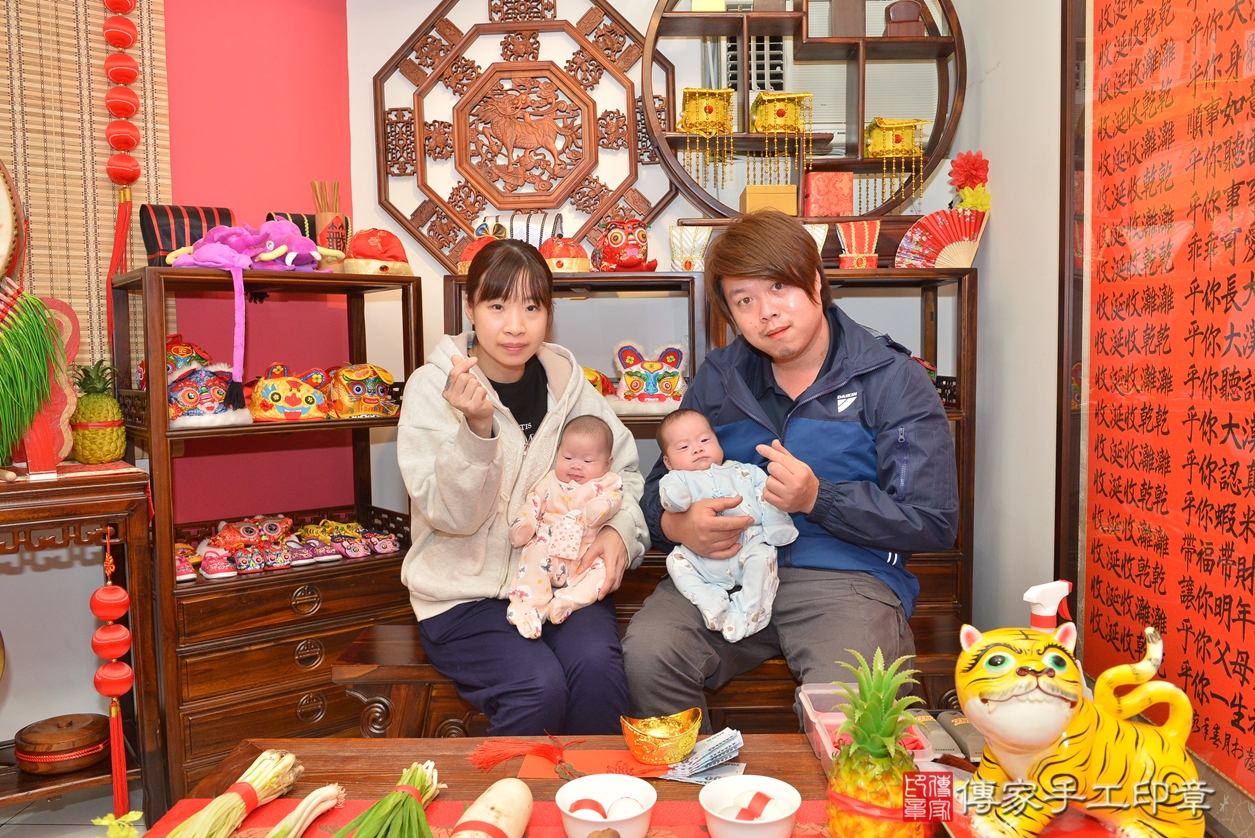 葉寶寶 (雙胞胎)(新竹市香山區嬰兒葉寶寶 (雙胞胎)滿月剃頭理髮、嬰兒剃胎毛儀式吉祥話)。中國風會場,寶貝穿「日中韓」古裝禮服。專業拍照、DVD光碟、證書。★購買「臍帶章、肚臍章、胎毛筆刷印章」贈送:剃頭、收涎、抓周,三選一。2022.02.13