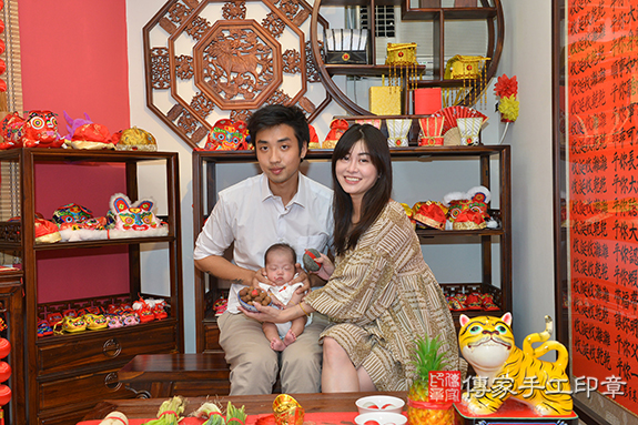 今天是顏寶寶重要的日子,顏寶寶一家人來到傳家手工印章舉辦剃頭儀式,紀錄顏寶寶的成長過程
