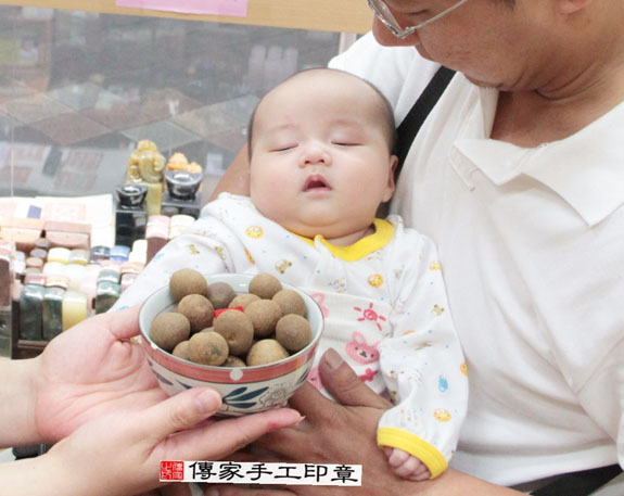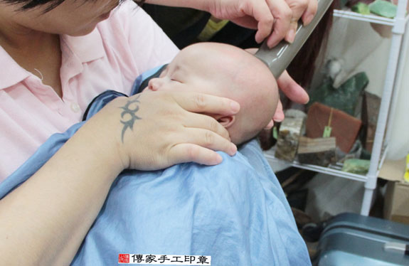 我跟爸爸媽媽一起來到傳家手工印章做我的第一次剃髮儀式喔~