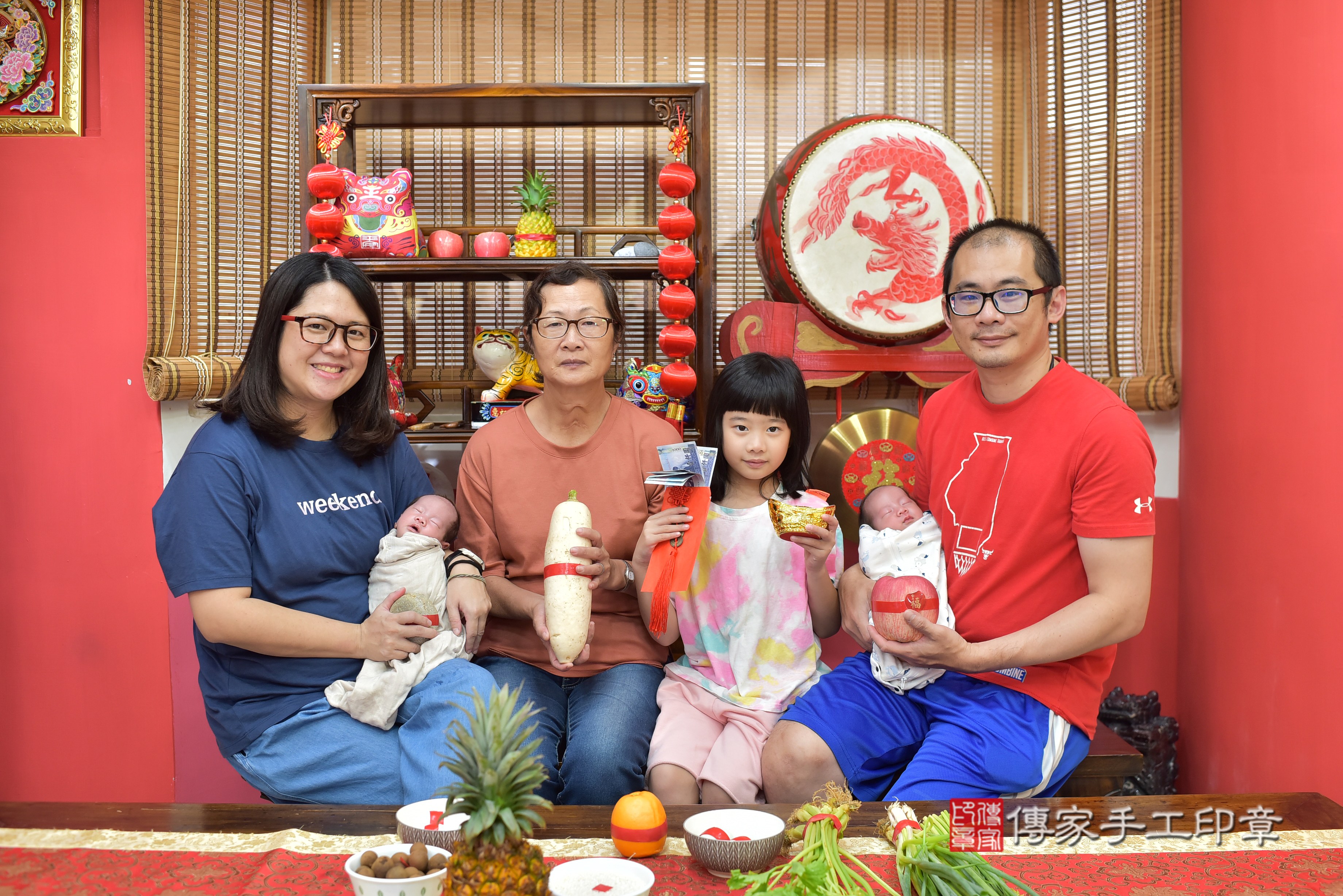 林寶寶(雙胞胎)一家人找傳家舉辦林寶寶的滿月剃頭儀式,紀錄林寶寶滿月的成長儀式~