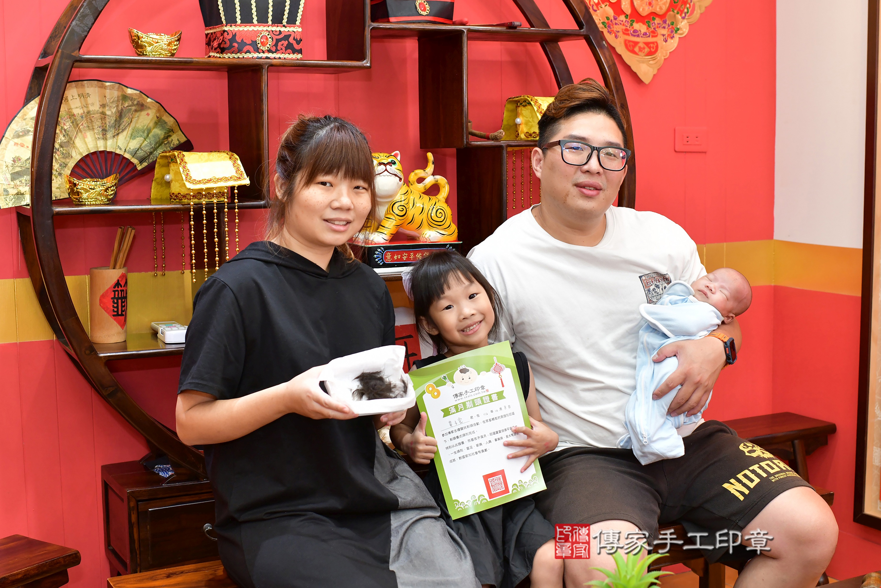 黃寶寶一家人找傳家舉辦黃寶寶的滿月剃頭儀式,紀錄黃寶寶滿月的成長儀式~