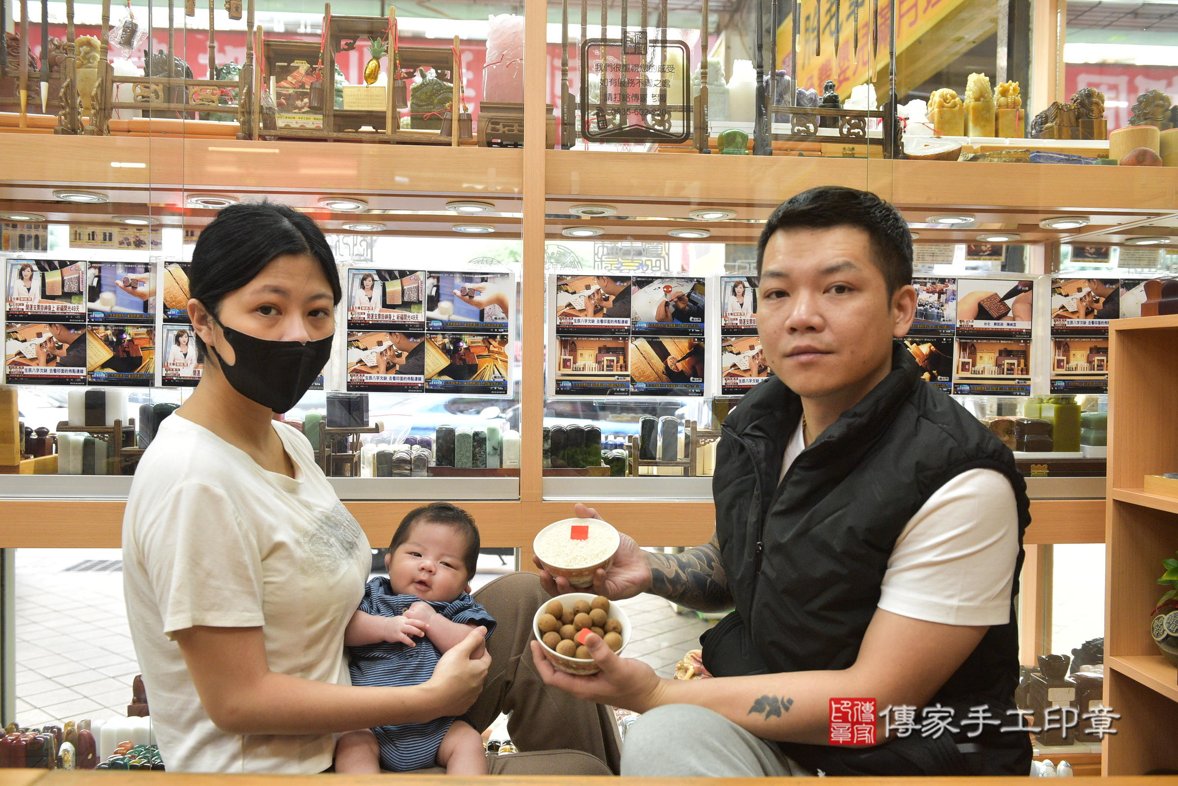 一.傳家手工印章,購買嬰兒產品(臍帶章、肚臍章、胎毛筆)達低銷金額,贈送來店簡易嬰兒古禮「1剃頭、2收涎、3抓周」,三選一,包含儀式吉祥話,拍照。贈送古禮方案,請看傳家手工印章官網說明。