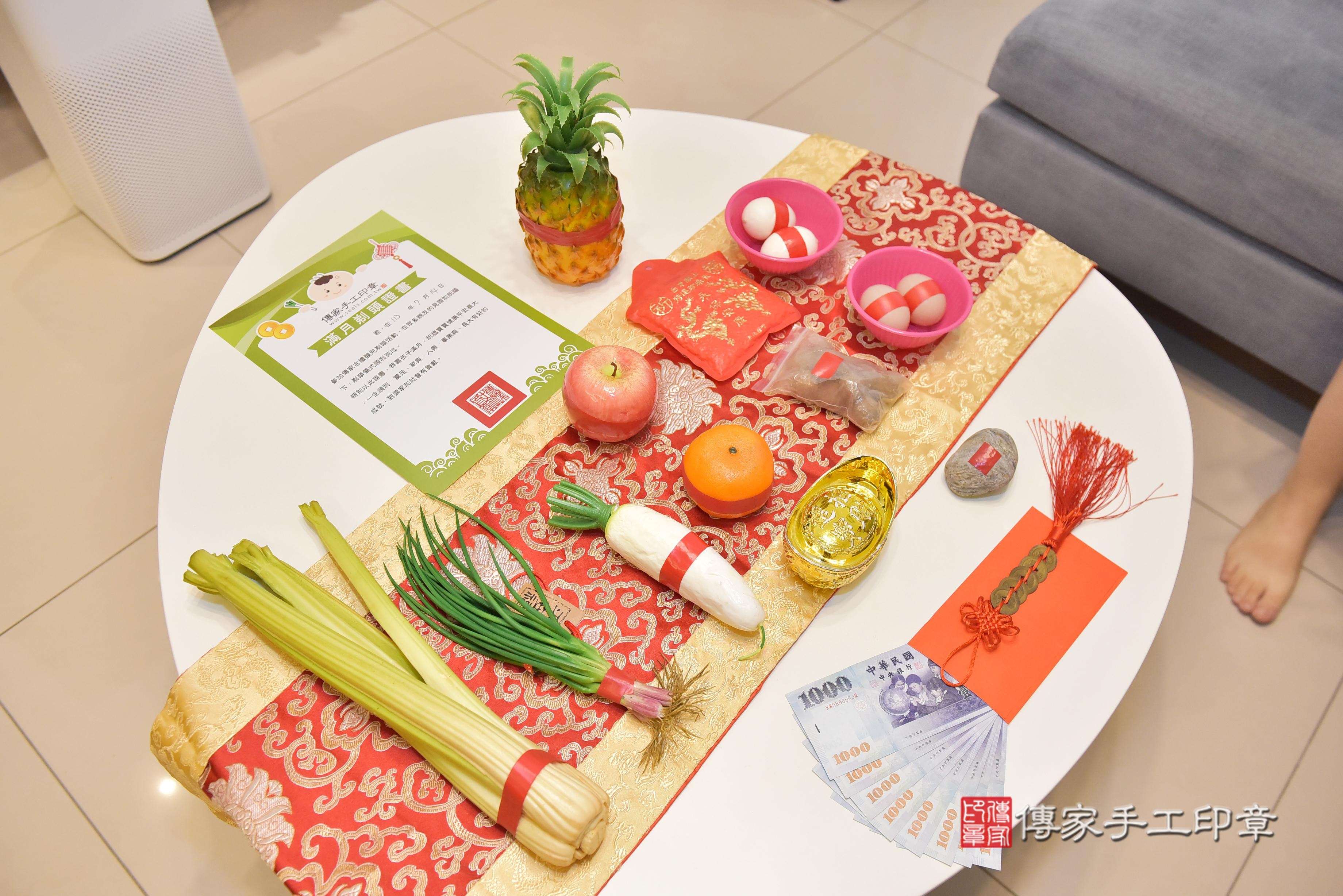 傳家準備十樣物品及專屬證書,表示十全十美,剃頭儀式即將開始~
