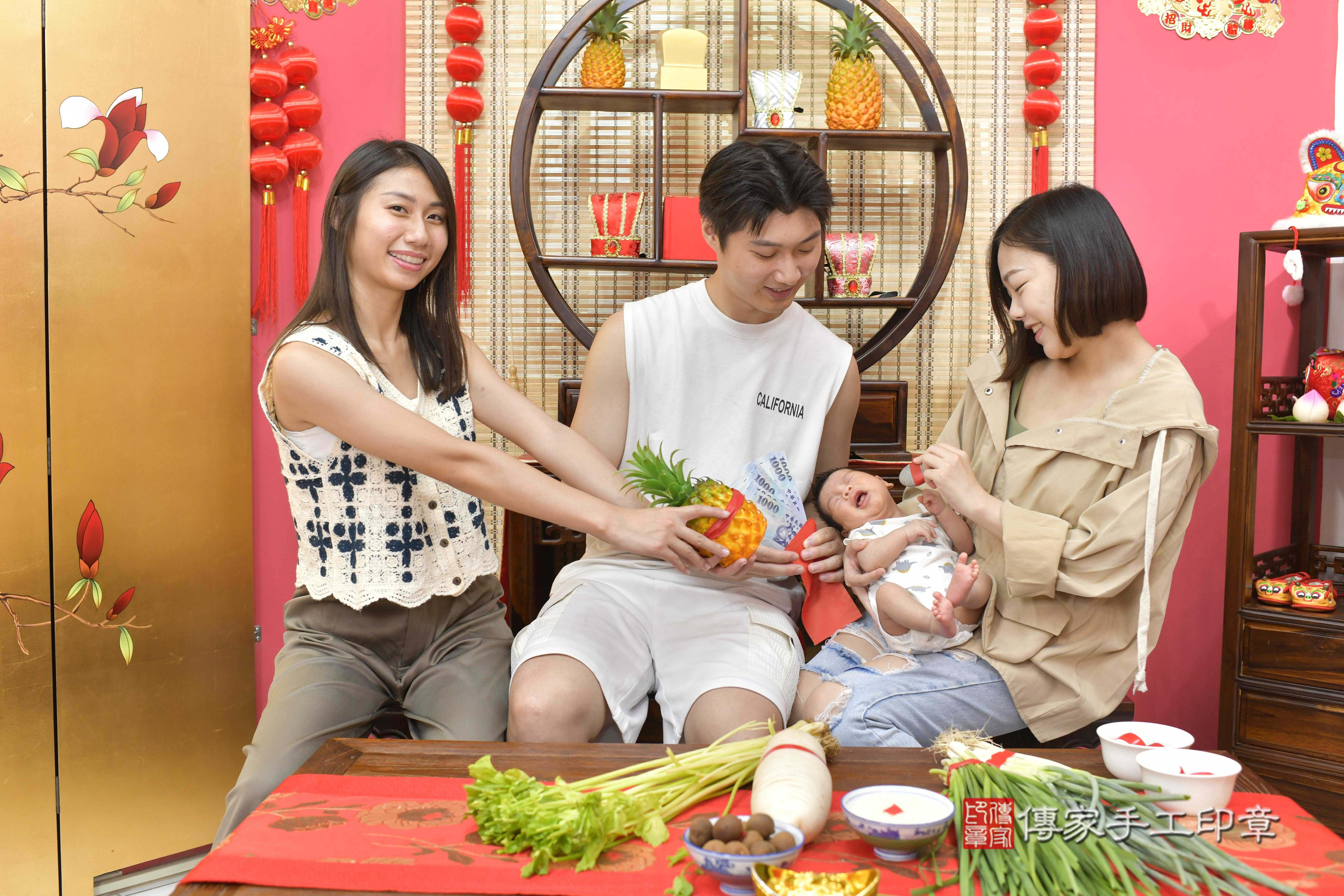 小勳寶貝一家人找傳家舉辦寶寶的滿月剃頭儀式,紀錄小勳寶貝滿月的成長儀式~