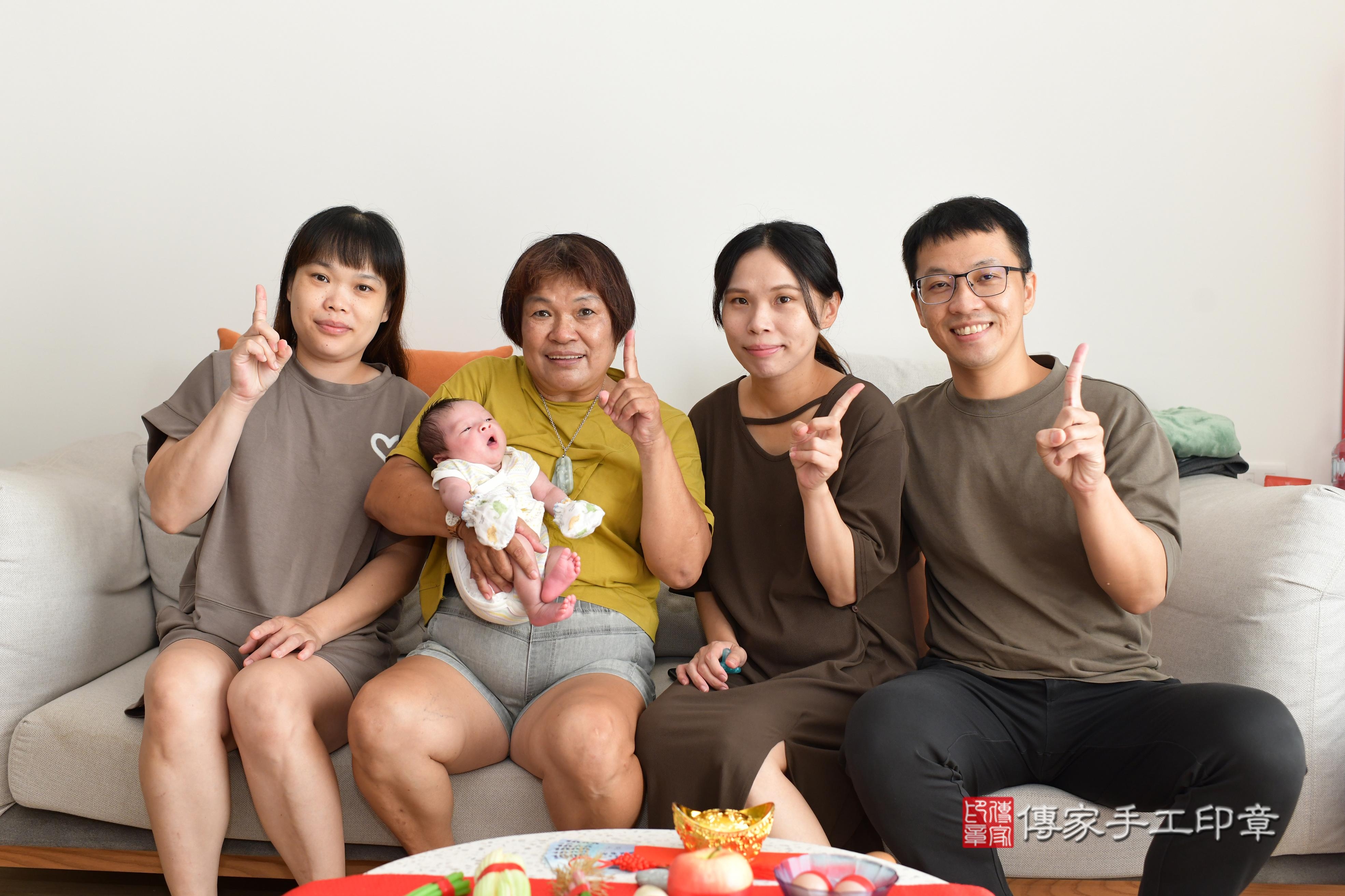 采采寶貝一家人找傳家舉辦寶寶的滿月剃頭儀式,紀錄采采寶貝滿月的成長儀式~