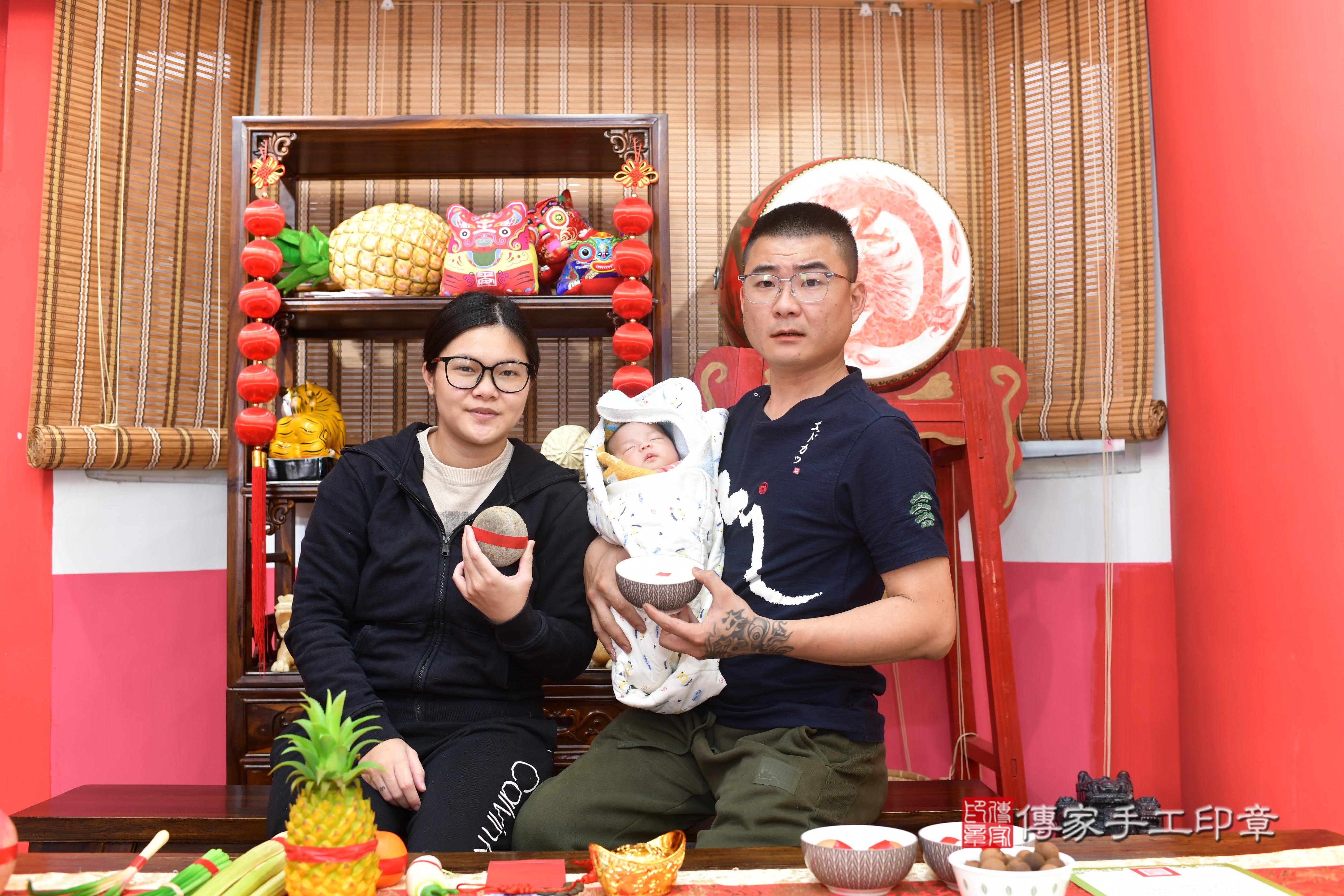 媃媃寶貝一家人找傳家舉辦寶寶的滿月剃頭儀式,紀錄媃媃寶貝滿月的成長儀式~