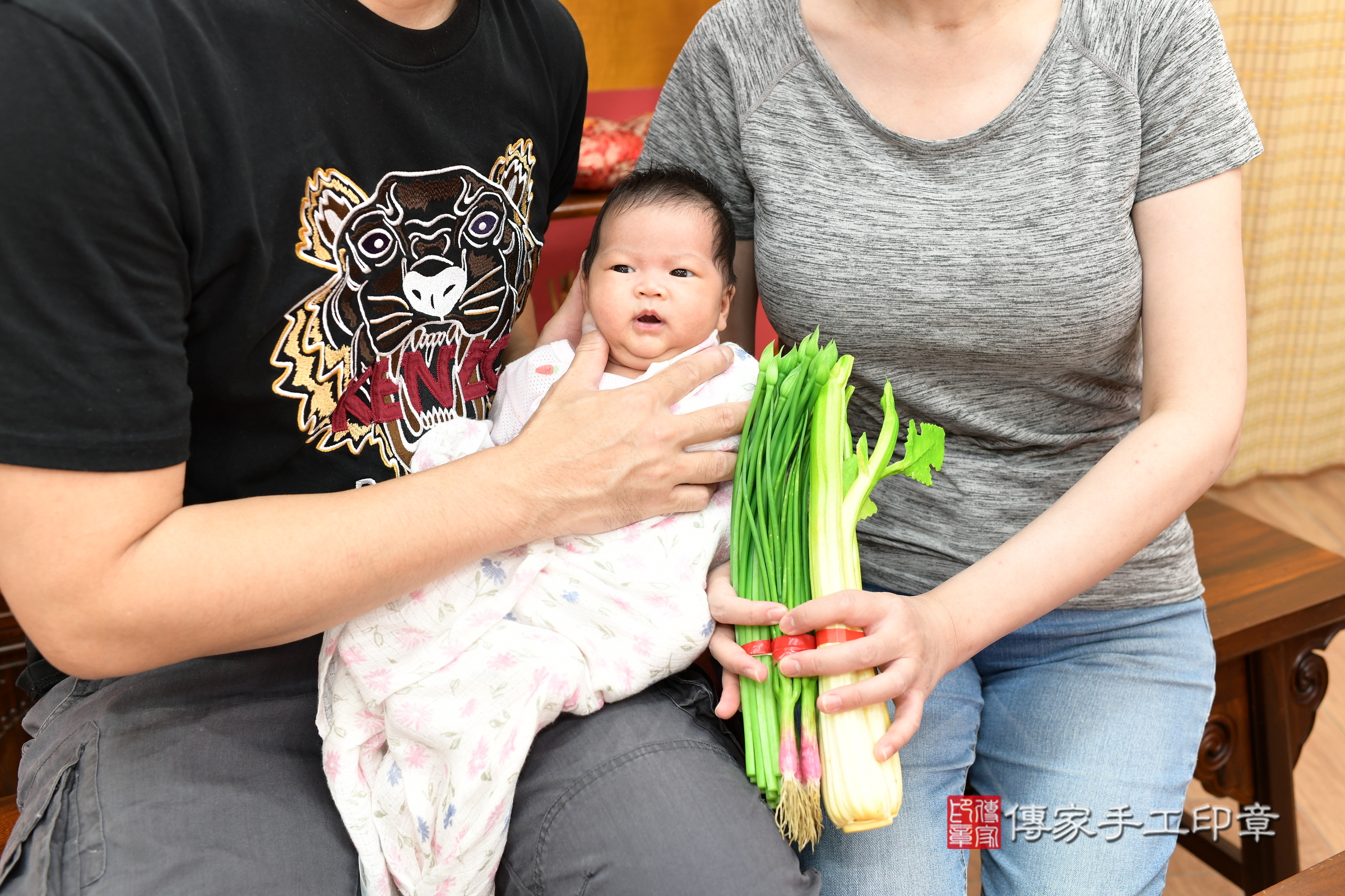 象徵去除穢氣,同時希望寶寶毛髮可以長得更濃密漂亮~