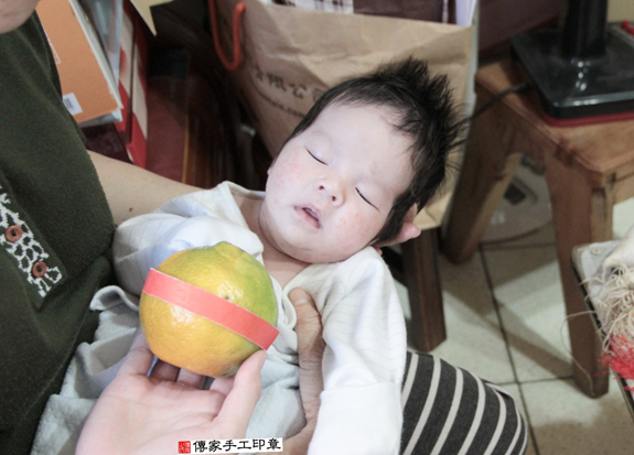 今天:2015年的11月15日 天氣:晴 剃頭小組:小芳&古爸 為王寶寶準備煮熟的圓的雞蛋兩顆。 煮熟雞蛋2個「代表的含意:寶寶生臉蛋英俊、女生臉蛋美麗漂亮」。 為王寶寶準備煮熟的圓的鴨蛋兩顆。 煮熟鴨蛋2個 「代表的含意:嬰兒的身形跟鴨蛋的形狀一樣、身材健美」。 讓寶寶長大頭好壯壯,當個健美男孩喔! 為王寶寶準備的圓的石頭1個。 石頭「代表的含意:頭殼堅硬跟石頭一樣、身體硬朗、有膽量、勇敢」 讓寶寶長大有膽量有膽識,要做大事唷! 為王寶寶準備一顆橘子。 橘子「代表的含意:大吉大利」 讓寶寶大吉大利~事事都順心唷! 為王寶寶準備一顆蘋果。 蘋果「代表的含意:平平安安」 讓寶寶健健康康平安長大唷! 為王寶寶準備一碗滿滿的米。 米。「代表的含意:一生有飯吃,豐衣足食,不愁吃穿」 讓寶寶長大都不愁吃穿唷! ~ 為王寶寶準備一大碗桂圓。 桂圓「代表的含意:桂圓的台語發音,跟「貴人」一樣,象徵孩子有貴人相助」 讓寶寶身邊都環繞著貴人呦~~ 為王寶寶準備的芹菜一把。 芹菜一小把。「代表的含意:勤勞、積極、努力向上」。 寶寶長大要幫爸爸媽媽分擔經濟,分擔家計喔!! 為王寶寶準備漂亮的蔥一把。 蔥:象徵「孩子聰明會念書」。 爸爸媽媽我是一個聰明的小孩以後考試都100分喔~~ 為王寶寶準備的大蘿蔔。 蘿蔔「代表的含意:蘿蔔就是好彩頭,象徵孩子一生好運源源不絕」 讓寶寶一輩子都可以好運滿滿喔! 為王寶寶準備的鳳梨。 鳳梨「代表的含意:鳳梨就是旺旺來,象徵孩子一生好運旺旺來」 讓寶寶一輩子都可以一路旺到底喔! 為王寶寶準備的1000元大鈔,五帝錢和紅包袋。 紅包袋裡面裝千元大鈔:象徵「孩子能賺大錢」, 五帝錢:象徵「代表盛世吉祥和富貴」。 爸爸媽媽我長大一定會賺很多很多的錢錢讓你們享福喔! 王寶寶要開始剃頭囉, 剃頭象徵今天從頭開始、圓圓滿滿喔。 寶寶好乖好勇敢阿姨幫你剃的更酷更炫喔 阿姨幫你剃眉毛幫你把霉運通通都趕跑~ 王寶寶滿月剃髮儀式完成囉~ 傳家手工印章祝福王寶寶平安健康、聰明長大! 也祝福王寶寶全家平安健康喜樂唷~ 還有許多全家福和剃髮花絮照片,就交由爸爸媽媽自己收藏和分享囉, 傳家不會公開寶寶的名字和資料,大家就看到這邊就好囉! 以上照片由王寶寶家長同意公開使用,版權所有。 歡迎爸爸媽媽來電預約寶寶剃髮服務 (包含專業拍照整個過程), 傳家會用心為您的孩子服務和祝福。 免費到府嬰兒胎毛理髮:製作臍帶印章、胎毛筆、嬰兒三寶。 歡迎家長來電預約。 台北店:新北市永和區永貞路129號。聯絡電話:02-2922-6422。 (服務台北、新北、基隆、桃園、宜蘭等地區) 新竹店:新竹市經國路三段71號。聯絡電話:035-304-066。 (服務新竹、苗栗、新竹科學園區、苗栗科學園區等五大科學園區) 台中店:台中市北區忠明路502-5號。聯絡電話:04-2202-3030。 (服務台中以南、彰化、南投、雲林、嘉義、台南、高雄、屏東等地區)