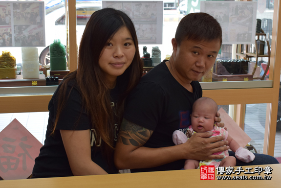 傳家在高雄地區的,滿月剃頭(剃胎毛)會場環境以明、清朝中國風格設計,多款中、日、韓古裝禮服,成人、小孩都有,及虎衣、虎帽、虎鞋穿戴拍照,剃胎毛儀式完整齊全。會場位於高雄鳳山區瑞隆東路;在傳家手工印章高雄門市二樓,需要走樓梯(沒有電梯),如需參觀或報名參加,請事先電話預約,這樣傳家才能安排人力,為您服務。