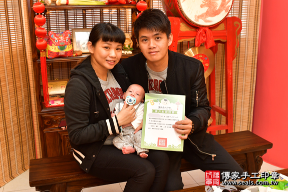 傳家在高雄地區的,滿月剃頭(剃胎毛)會場環境以明、清朝中國風格設計,多款中、日、韓古裝禮服,成人、小孩都有,及虎衣、虎帽、虎鞋穿戴拍照,剃胎毛儀式完整齊全。會場位於高雄鳳山區瑞隆東路;在傳家手工印章高雄門市二樓,需要走樓梯(沒有電梯),如需參觀或報名參加,請事先電話預約,這樣傳家才能安排人力,為您服務。
