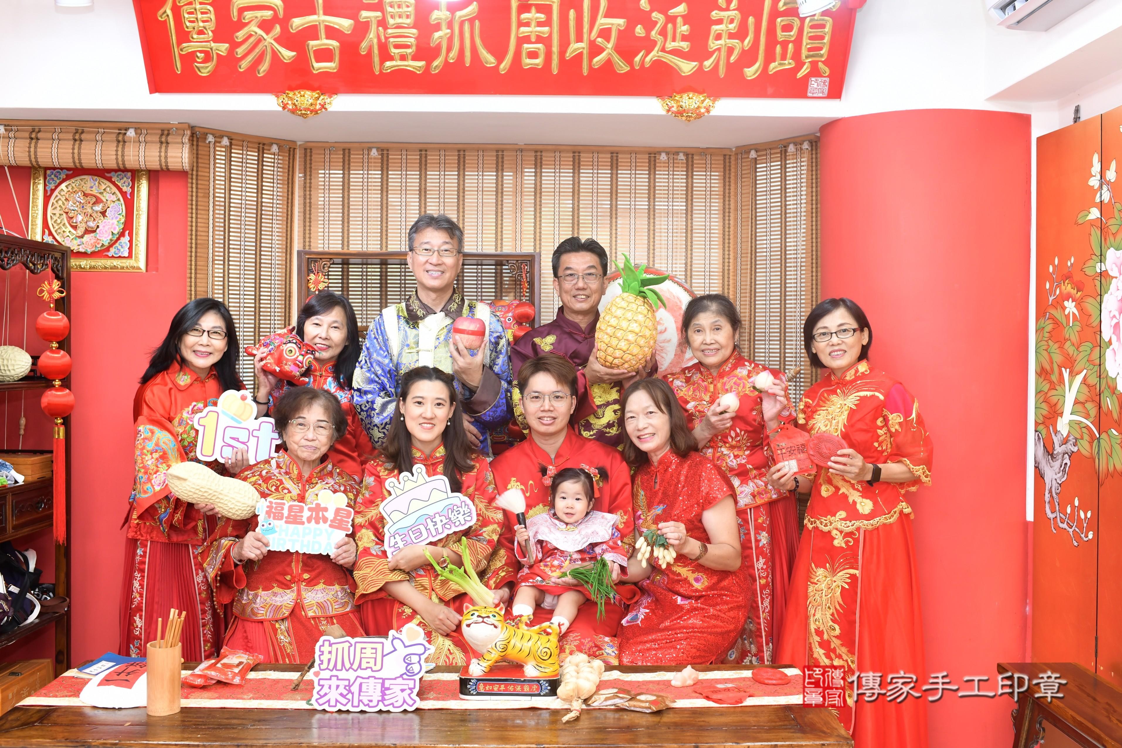 劉寶寶一家人,一起大合照。記錄寶貝女兒周歲抓周。