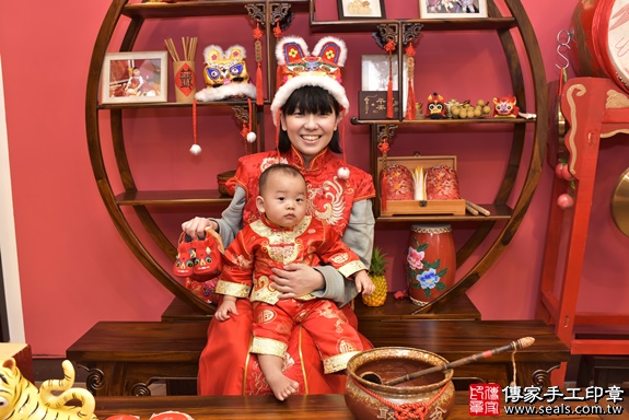 新北市永和區周寶寶抓周推薦:傳家新北店抓周度脺中國風會場,專業嬰兒古禮抓周流程儀式吉祥話、抓周道具物品24種、攝影拍照。爸媽寶貝三人免費穿古裝禮服「日式、中式、韓式。款式200套」抓周證書,DVD光碟。2019.10.24