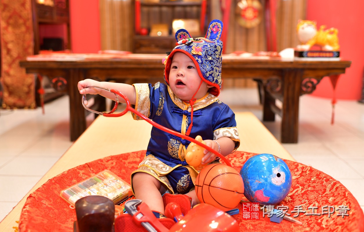 高雄市鳳山區陳寶寶抓周推薦:傳家高雄店抓周度脺中國風會場,嬰兒古禮抓周流程儀式吉祥話、抓周道具物品24種、拍照。抓周證書。2021.05.02