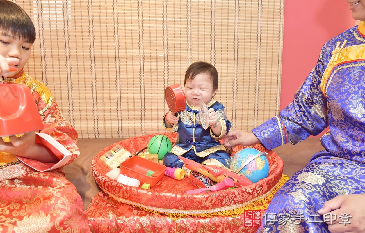 新竹市香山區莊寶寶抓周推薦:傳家新竹店抓周度脺中國風會場,嬰兒古禮抓周流程儀式吉祥話、抓周道具物品24種、拍照。抓周證書。2021.04.17