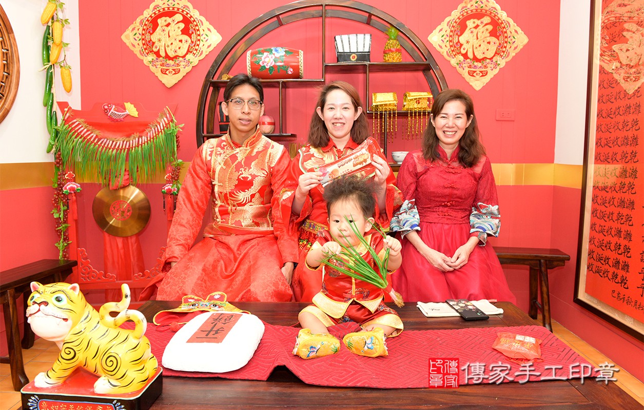 桃園市八德區賴寶寶抓周推薦:傳家桃園店抓周度脺中國風會場,嬰兒古禮抓周流程儀式吉祥話、抓周道具物品24種、拍照。抓周證書。2021.05.16