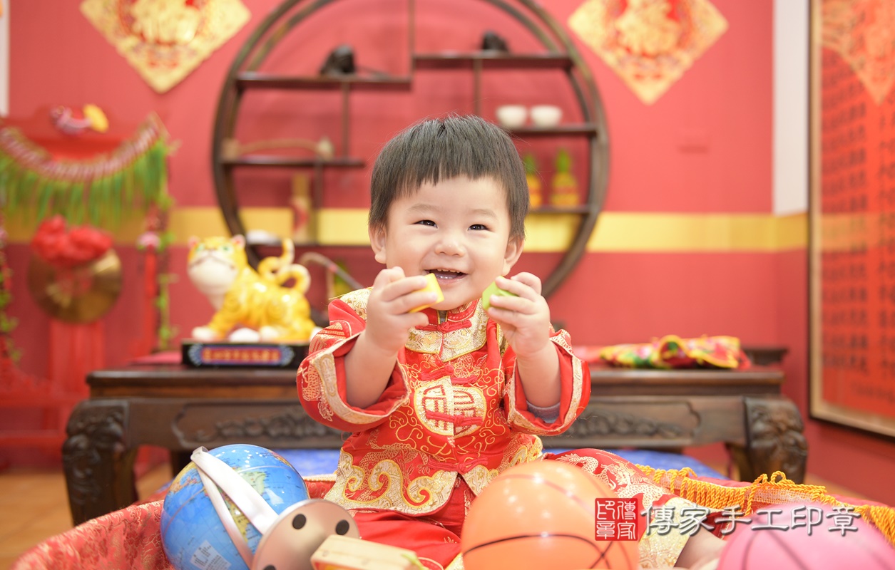 桃園市八德區張寶寶抓周推薦:傳家桃園店抓周度脺中國風會場,嬰兒古禮抓周流程儀式吉祥話、抓周道具物品24種、拍照。抓周證書。2020.11.28