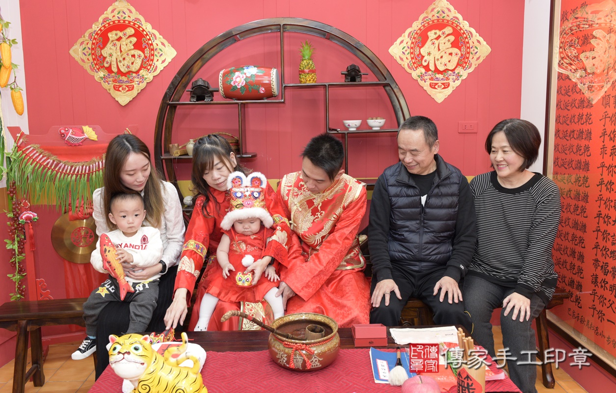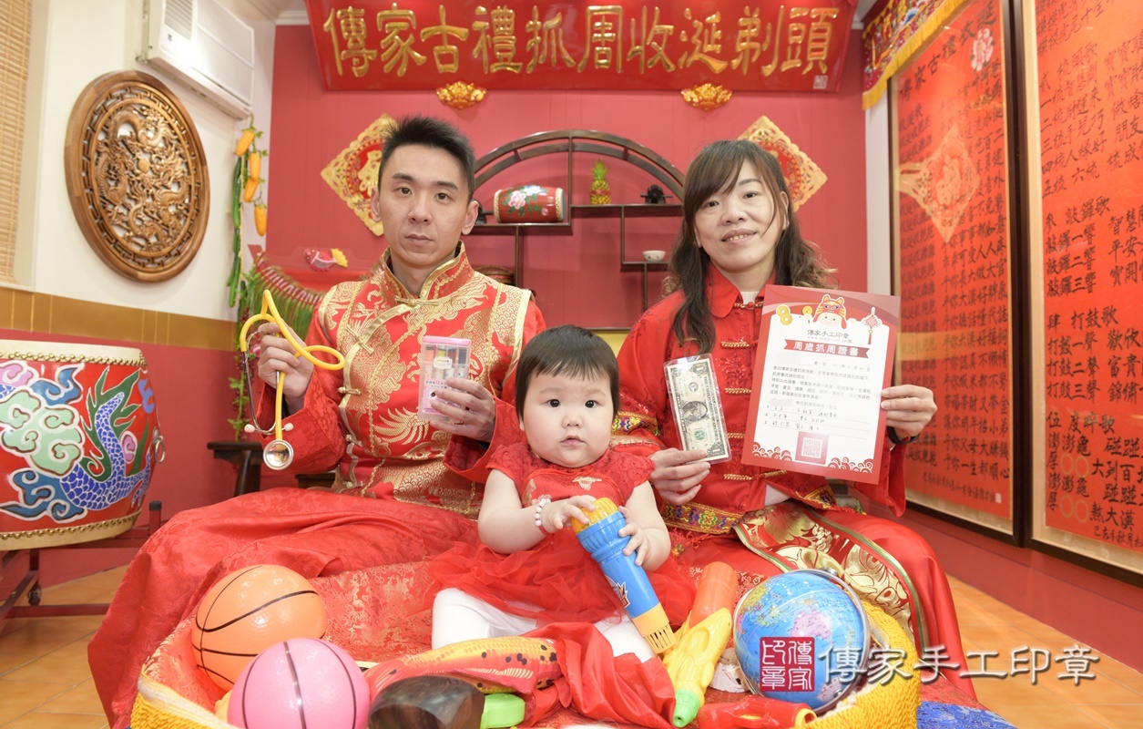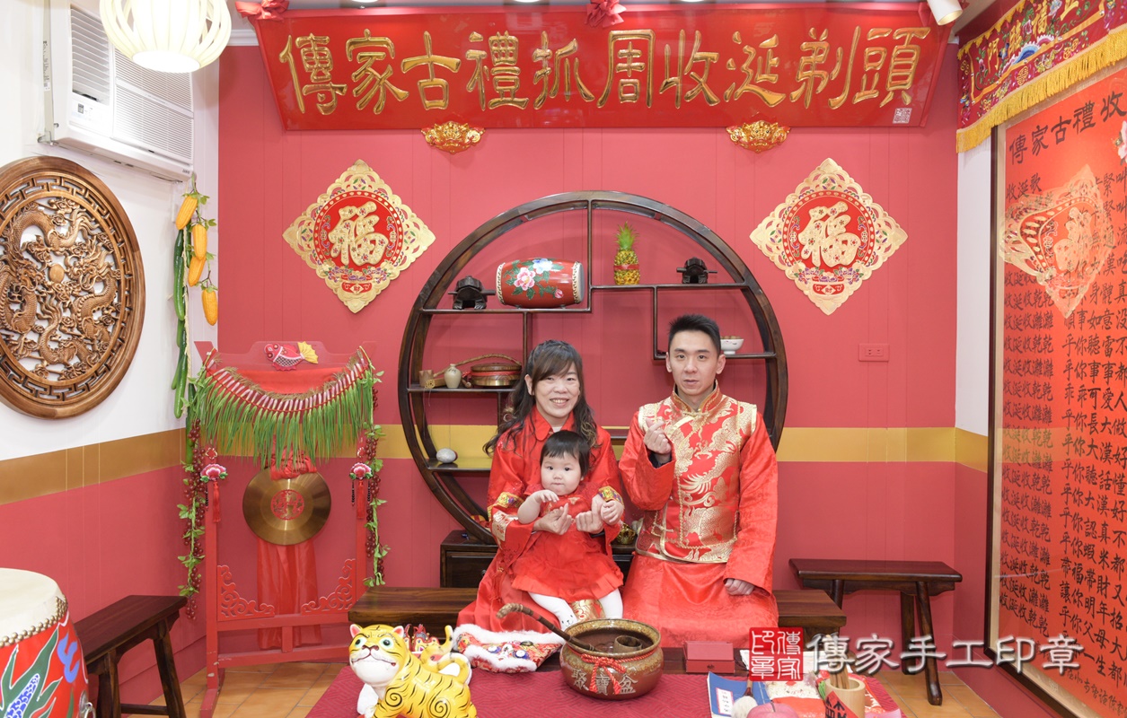 桃園市八德區湯寶寶抓周推薦:傳家桃園店抓周度脺中國風會場,嬰兒古禮抓周流程儀式吉祥話、抓周道具物品24種、拍照。抓周證書。2021.02.20