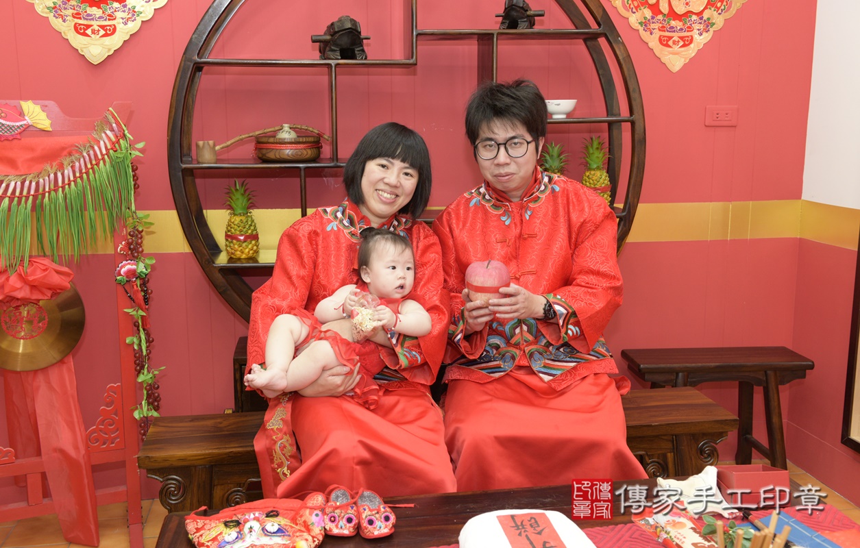 抓周儀式八德區陳寶寶【吃蘋果】:讓寶寶平平安安,有個蘋果臉,人見人愛。