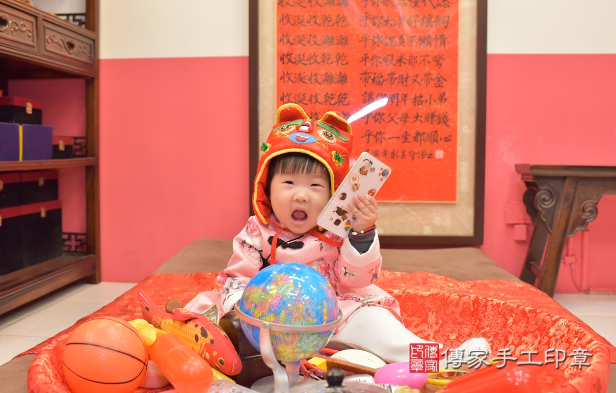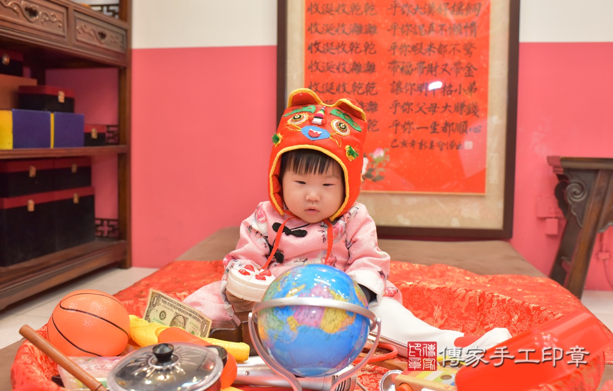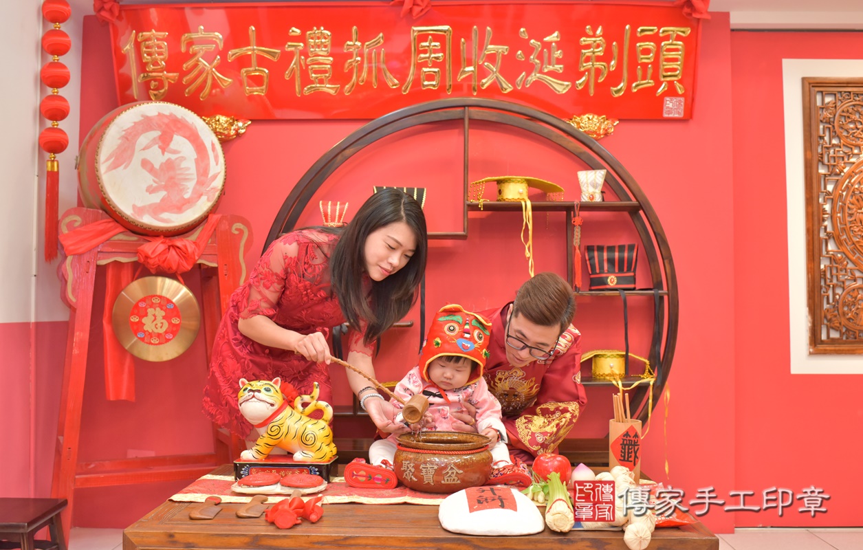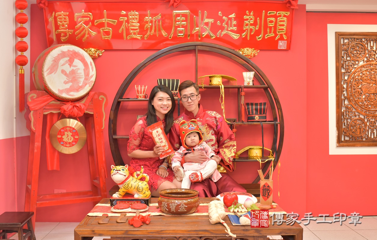 台中市北區洪寶寶抓周推薦:傳家台中店抓周度脺中國風會場,嬰兒古禮抓周流程儀式吉祥話、抓周道具物品24種、拍照。抓周證書。2021.03.22