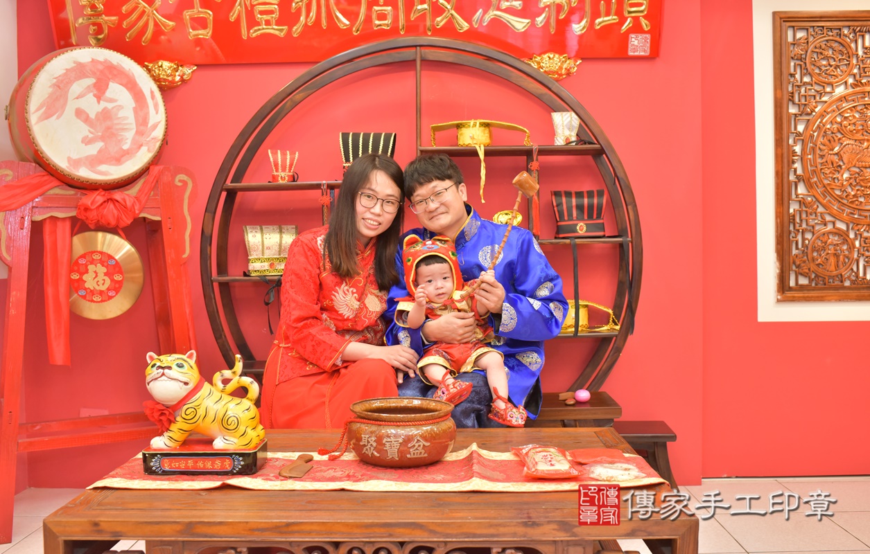 台中市北區王寶寶抓周推薦:傳家台中店抓周度脺中國風會場,嬰兒古禮抓周流程儀式吉祥話、抓周道具物品24種、拍照。抓周證書。2021.04.02