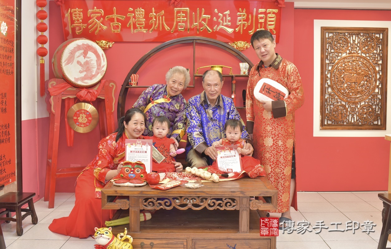 台中市北區賴寶寶抓周推薦:傳家台中店抓周度脺中國風會場,嬰兒古禮抓周流程儀式吉祥話、抓周道具物品24種、拍照。抓周證書。2021.04.23