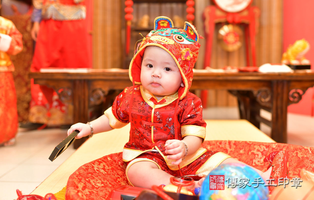 高雄市鳳山區莊寶寶抓周推薦:傳家高雄店抓周度脺中國風會場,嬰兒古禮抓周流程儀式吉祥話、抓周道具物品24種、拍照。抓周證書。2021.08.06