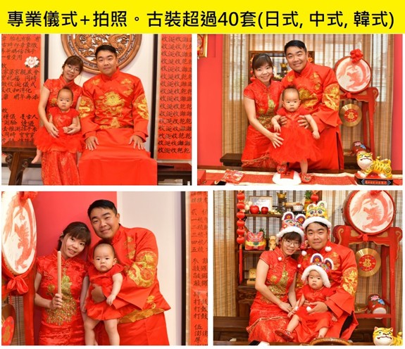 ★爸媽寶貝三人,免費穿古裝禮服「日式禮服、中式禮服、韓式禮服」,完整儀式+攝影拍照。