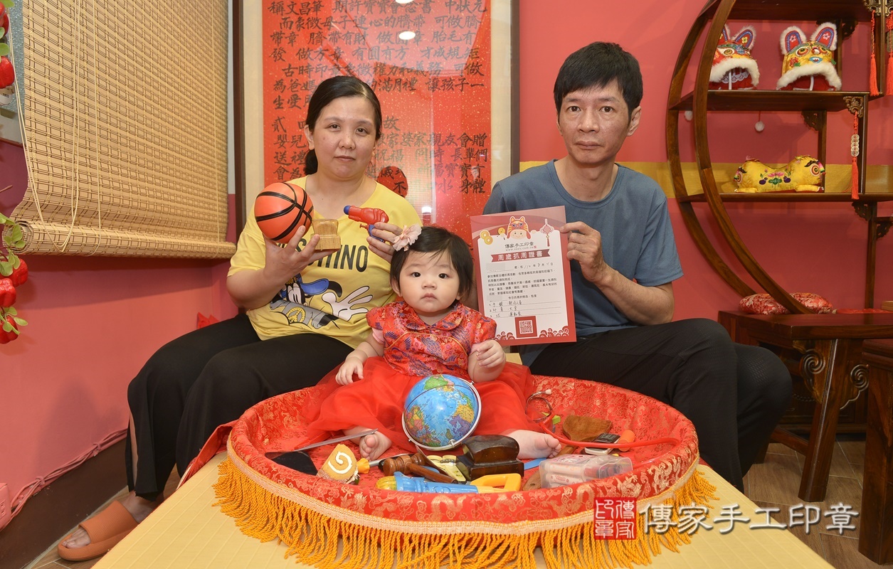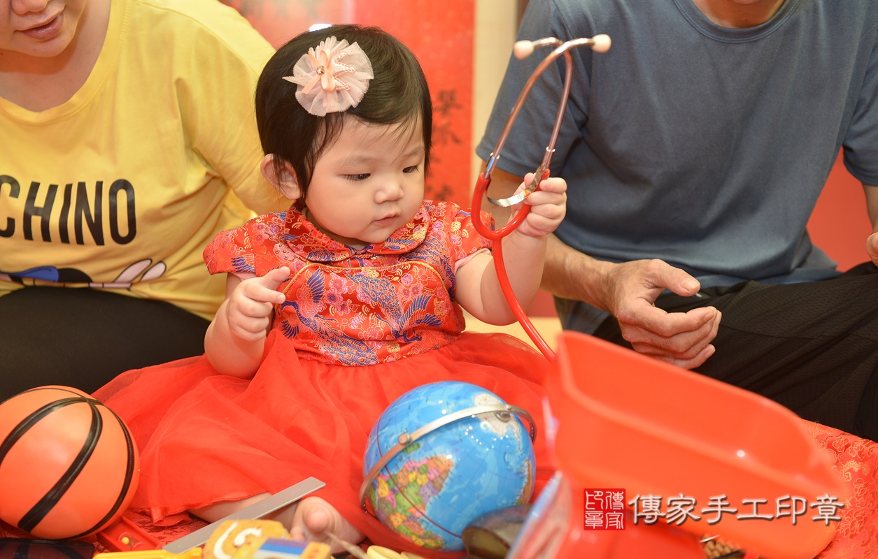 新北市永和區廖寶寶抓周推薦:傳家新北店抓周度脺中國風會場,嬰兒古禮抓周流程儀式吉祥話、抓周道具物品24種、拍照。抓周證書。2021.08.11