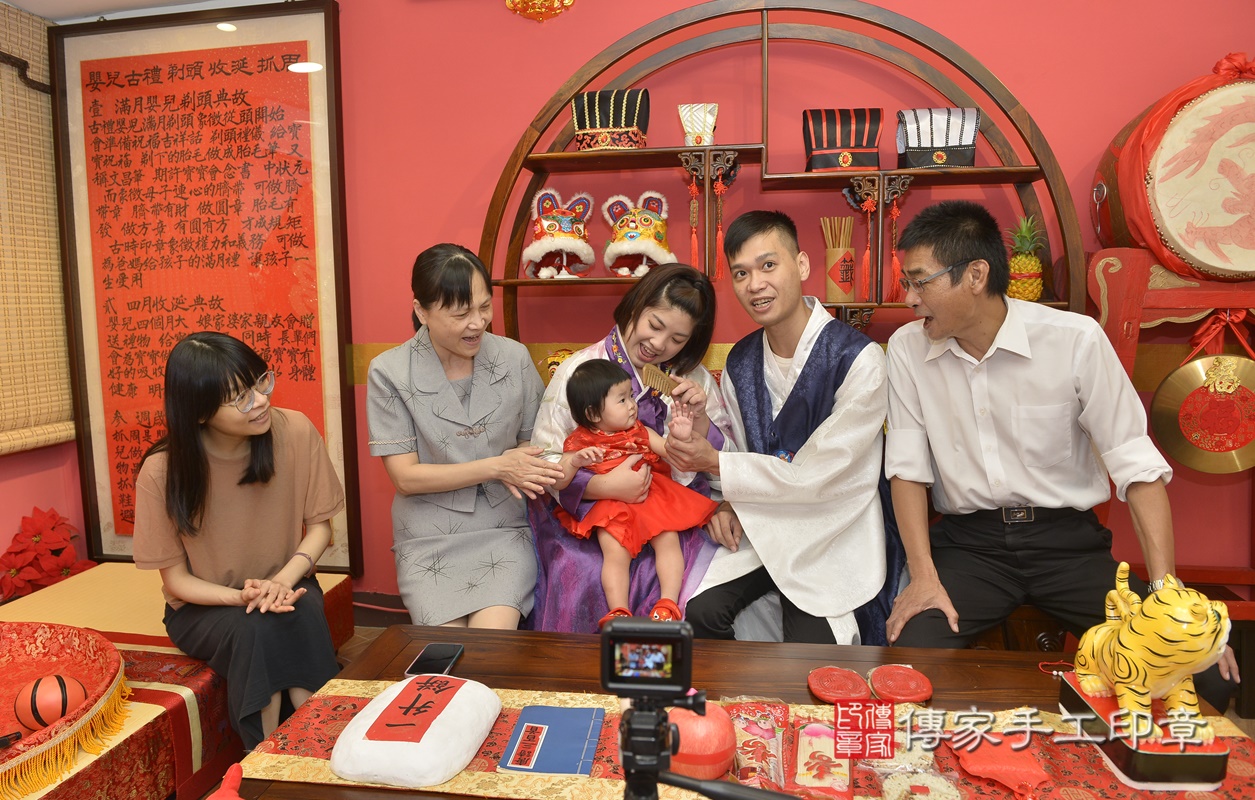 新北市永和區劉寶寶抓周推薦:傳家新北店抓周度脺中國風會場,嬰兒古禮抓周流程儀式吉祥話、抓周道具物品24種、拍照。抓周證書。2021.09.05