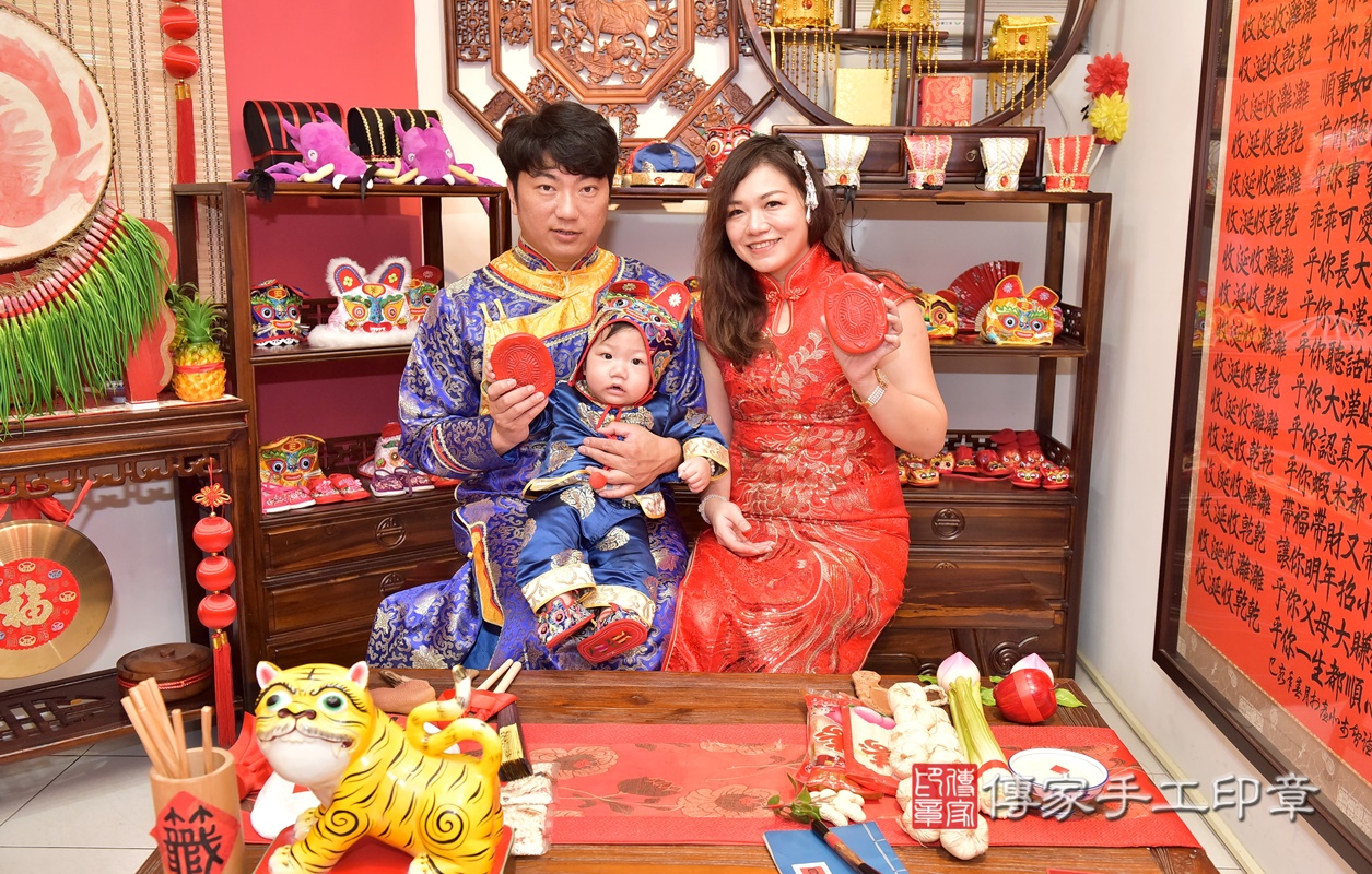 新竹市香山區莊寶寶抓周推薦:傳家新竹店抓周度脺中國風會場,嬰兒古禮抓周流程儀式吉祥話、抓周道具物品24種、拍照。抓周證書。2021.04.17