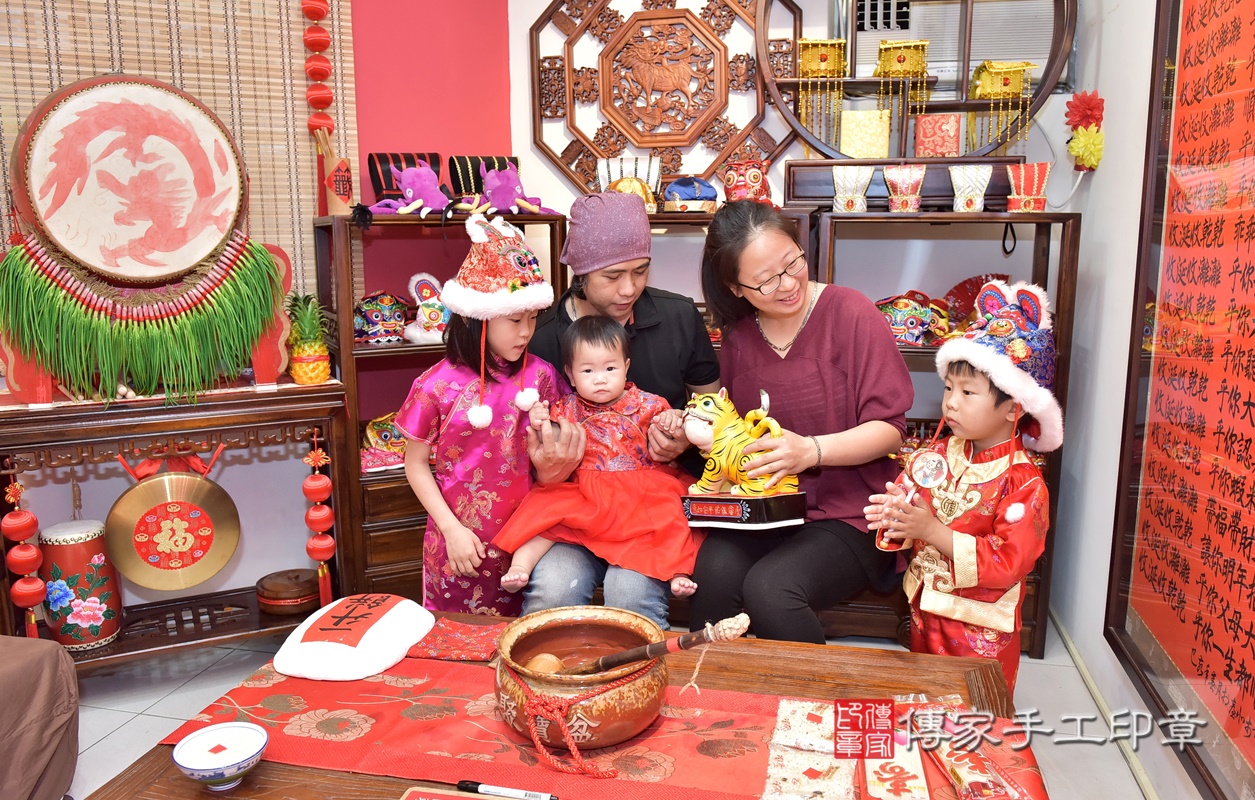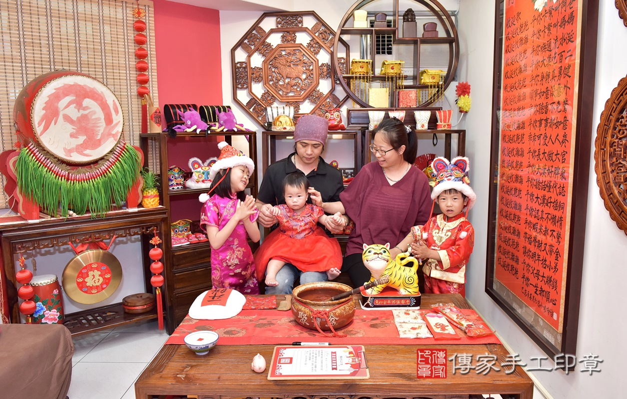 新竹市香山區彭寶寶抓周推薦:傳家新竹店抓周度脺中國風會場,嬰兒古禮抓周流程儀式吉祥話、抓周道具物品24種、拍照。抓周證書。2021.04.17