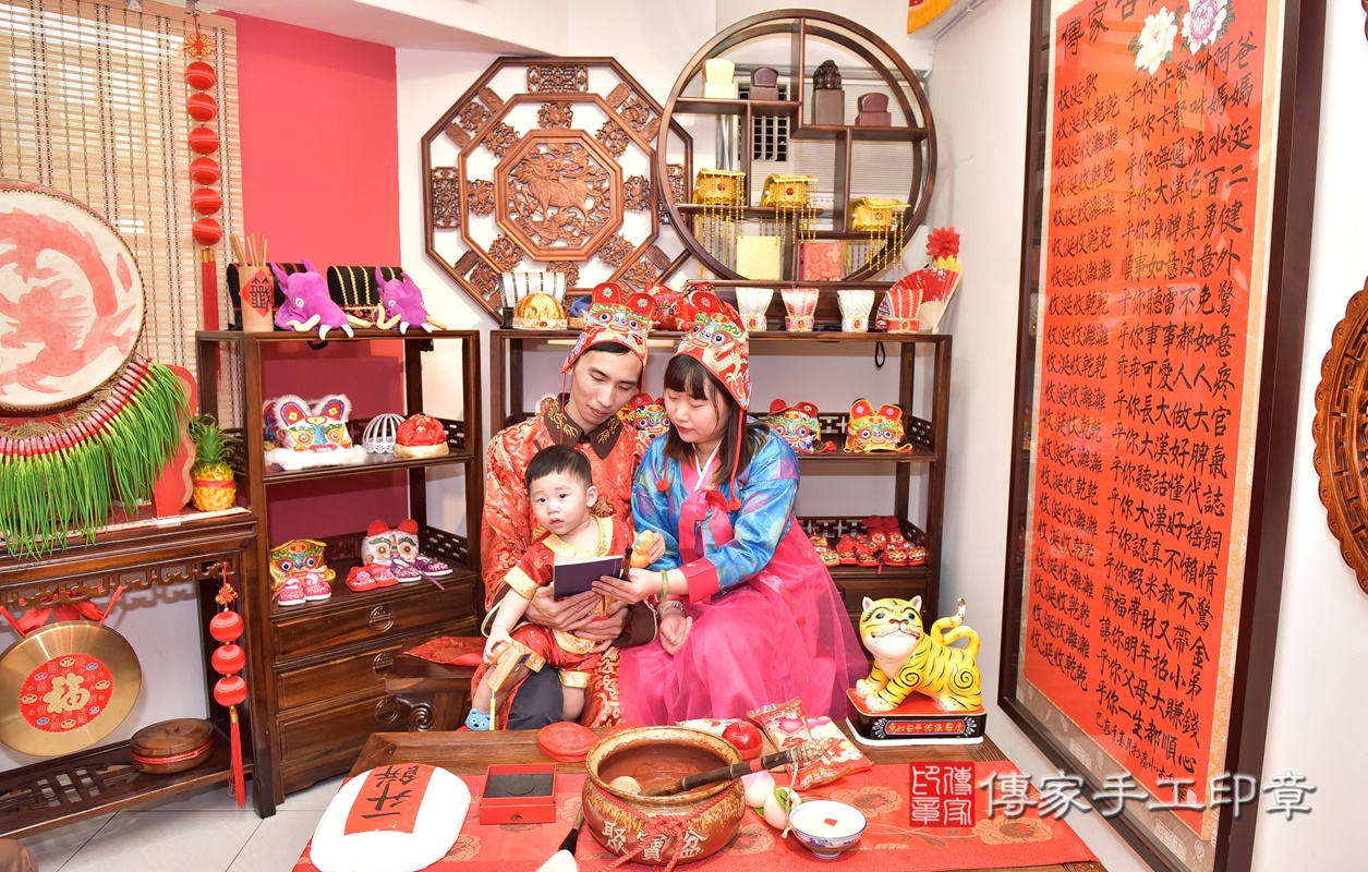 新竹市香山區陳寶寶抓周推薦:傳家新竹店抓周度脺中國風會場,嬰兒古禮抓周流程儀式吉祥話、抓周道具物品24種、拍照。抓周證書。2021.04.30