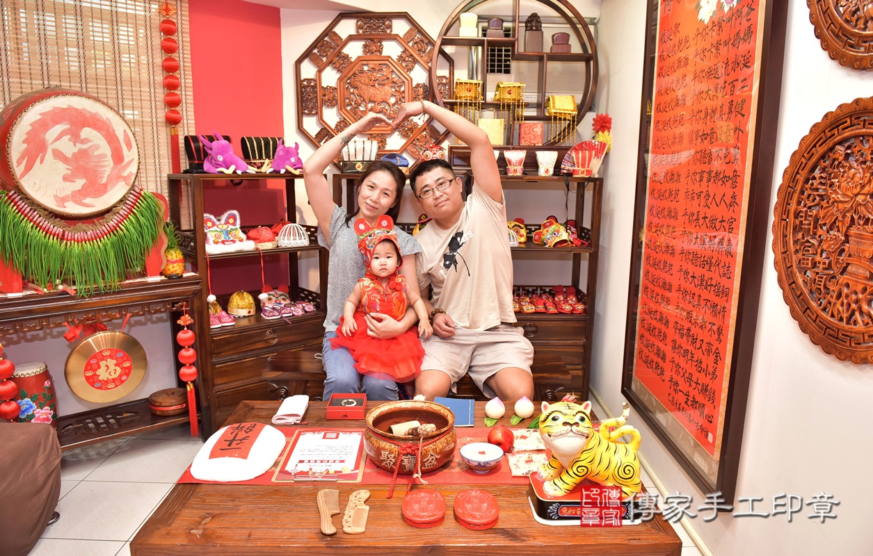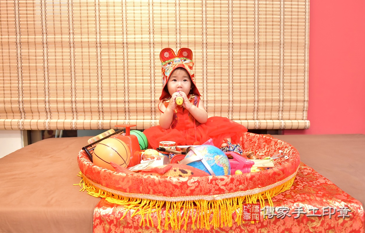 新竹市香山區莊寶寶抓周推薦:傳家新竹店抓周度脺中國風會場,嬰兒古禮抓周流程儀式吉祥話、抓周道具物品24種、拍照。抓周證書。2021.05.15