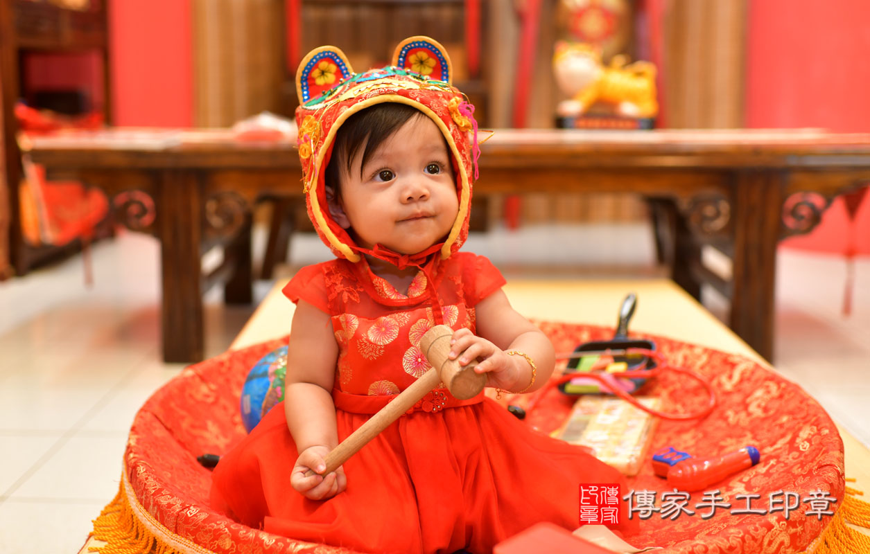 高雄市鳳山區張寶寶抓周推薦:傳家高雄店抓周度脺中國風會場,嬰兒古禮抓周流程儀式吉祥話、抓周道具物品24種、拍照。抓周證書。2021.12.19