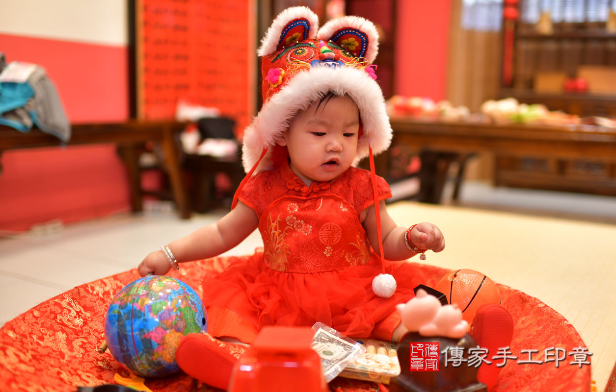 高雄市鳳山區鄭寶寶抓周推薦:傳家高雄店抓周度脺中國風會場,嬰兒古禮抓周流程儀式吉祥話、抓周道具物品24種、拍照。抓周證書。2021.12.24