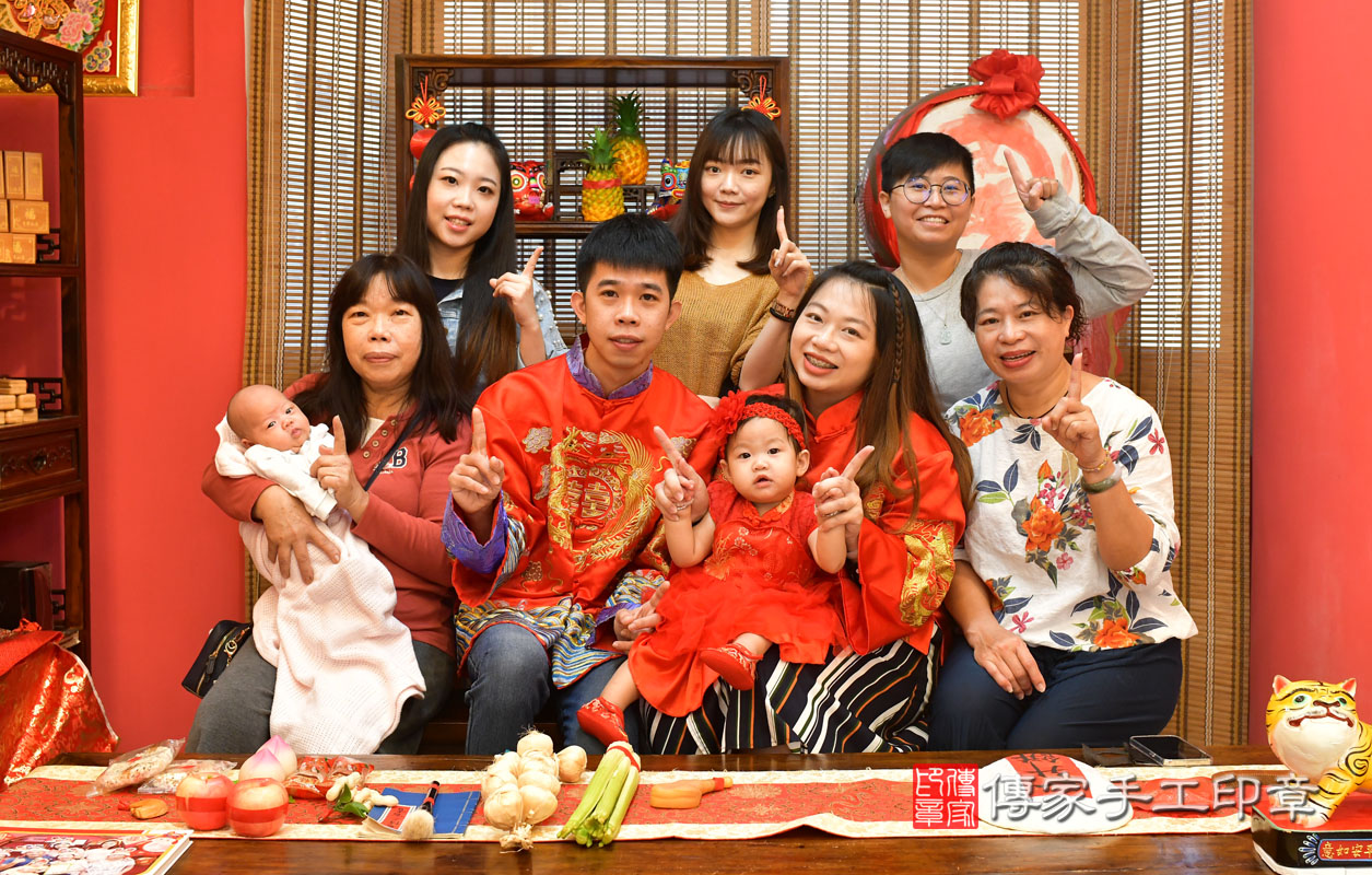鳳山區鄭寶寶抓周全家福大合照。高雄店抓周。