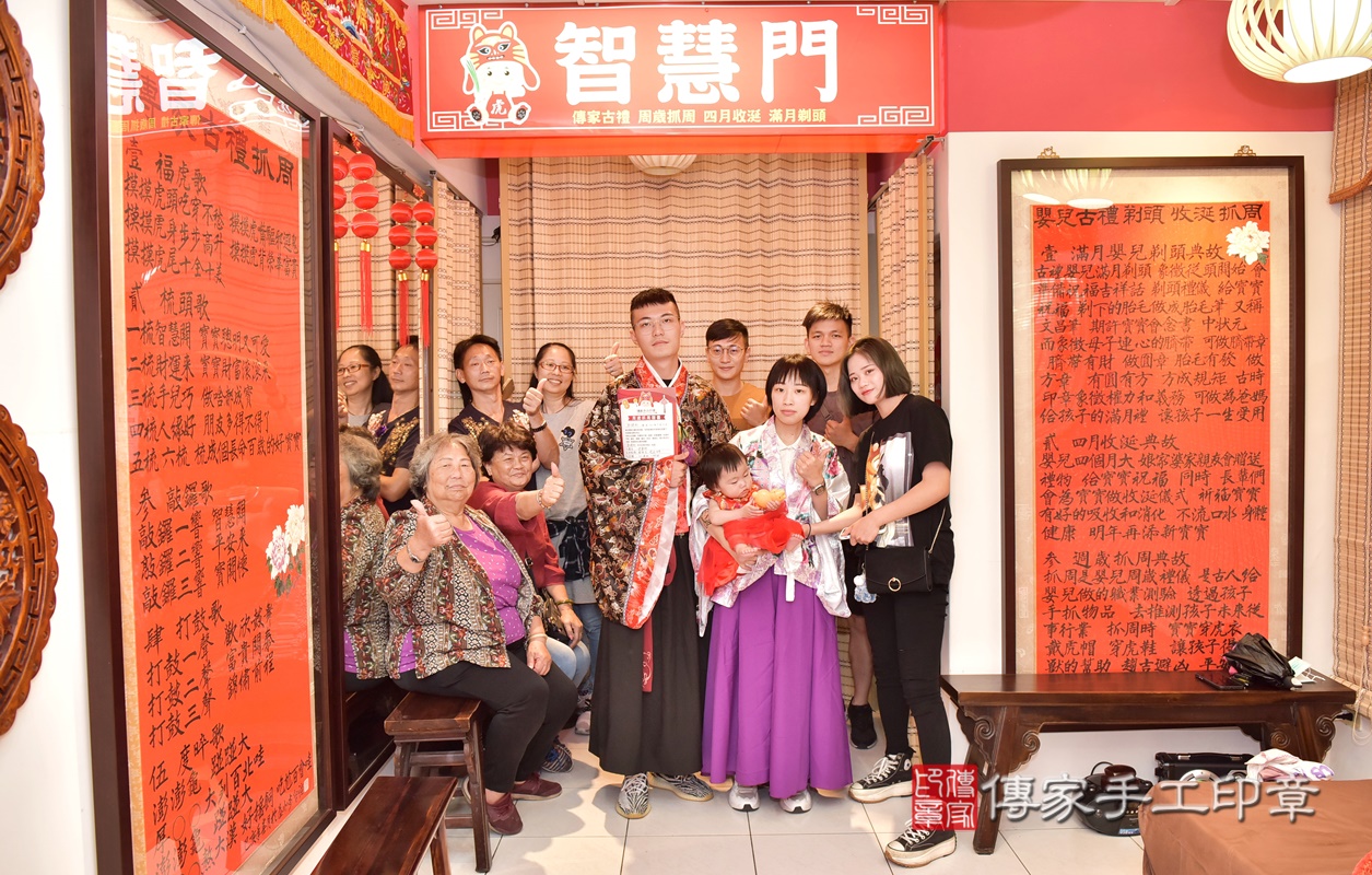 新竹市香山區郭寶寶抓周推薦:傳家新竹店抓周度脺中國風會場,嬰兒古禮抓周流程儀式吉祥話、抓周道具物品24種、拍照。抓周證書。2021.05.13