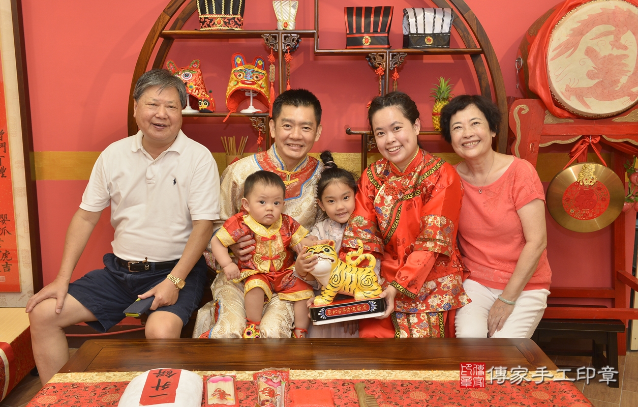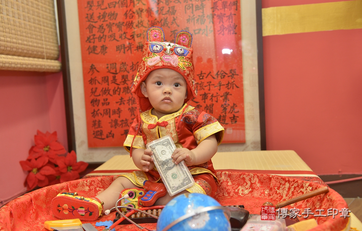 新北市永和區許寶寶抓周推薦:傳家新北店抓周度脺中國風會場,嬰兒古禮抓周流程儀式吉祥話、抓周道具物品24種、拍照。抓周證書。2021.10.02