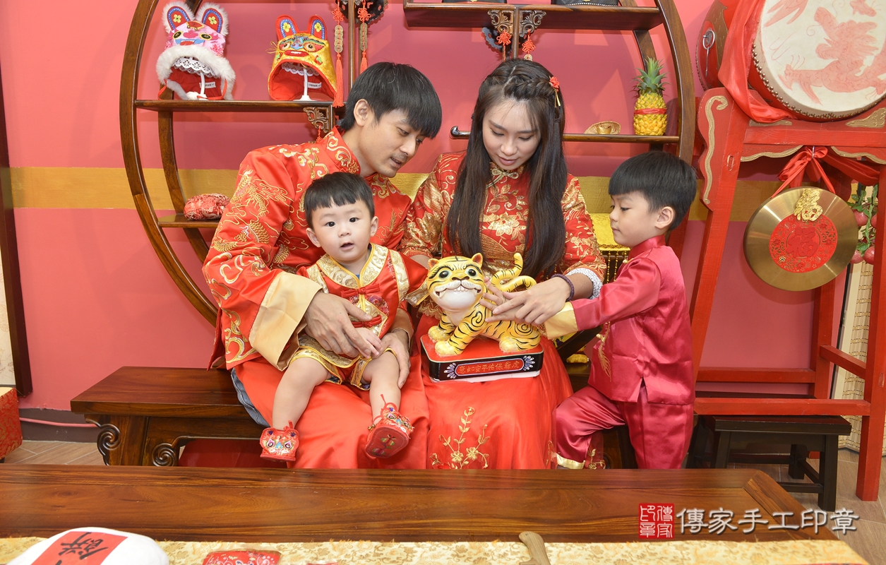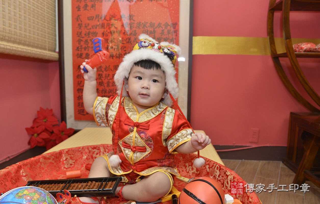 新北市永和區張寶寶抓周推薦:傳家新北店抓周度脺中國風會場,嬰兒古禮抓周流程儀式吉祥話、抓周道具物品24種、拍照。抓周證書。2021.10.16