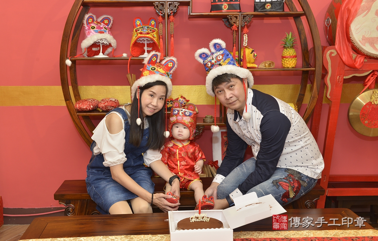 新北市永和區李寶寶古禮抓周【穿抓周虎衣、帶抓周虎帽、穿抓周虎鞋】:滿週歲趨吉避凶的吉祥衣服穿戴。新北店抓周。