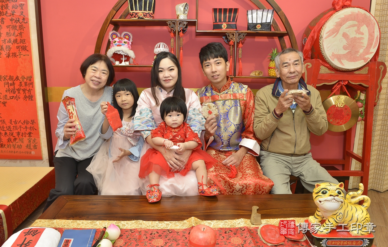 新北市永和區洪寶寶抓周推薦:傳家新北店抓周度脺中國風會場,嬰兒古禮抓周流程儀式吉祥話、抓周道具物品24種、拍照。抓周證書。2021.10.24