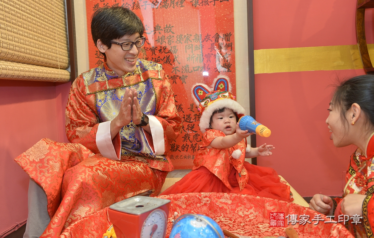 新北市永和區賴寶寶抓周推薦:傳家新北店抓周度脺中國風會場,嬰兒古禮抓周流程儀式吉祥話、抓周道具物品24種、拍照。抓周證書。2021.12.12