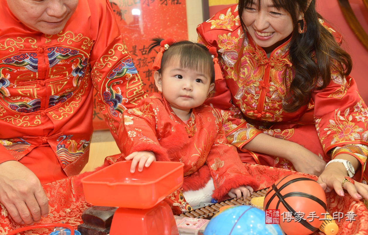 新北市永和區葉寶寶抓周推薦:傳家新北店抓周度脺中國風會場,嬰兒古禮抓周流程儀式吉祥話、抓周道具物品24種、拍照。抓周證書。2022.01.18