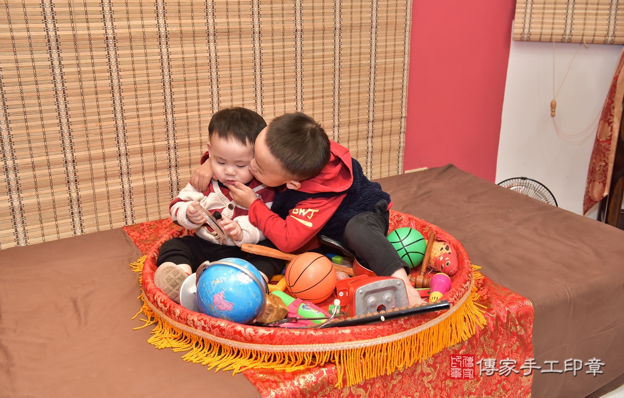 新竹市香山區郭寶寶抓周推薦:傳家新竹店抓周度脺中國風會場,嬰兒古禮抓周流程儀式吉祥話、抓周道具物品24種、拍照。抓周證書。2021.11.19