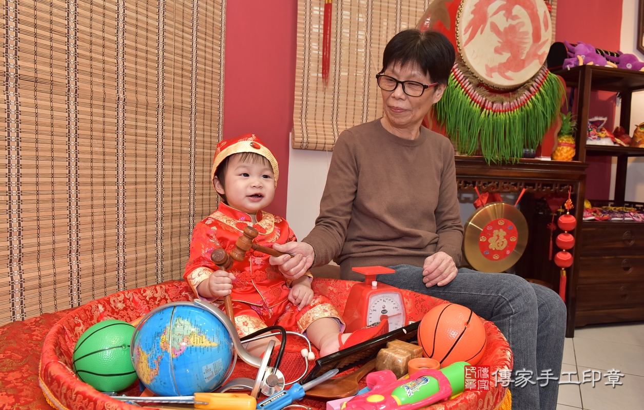 新竹市香山區朱寶寶抓周推薦:傳家新竹店抓周度脺中國風會場,嬰兒古禮抓周流程儀式吉祥話、抓周道具物品24種、拍照。抓周證書。2021.12.02