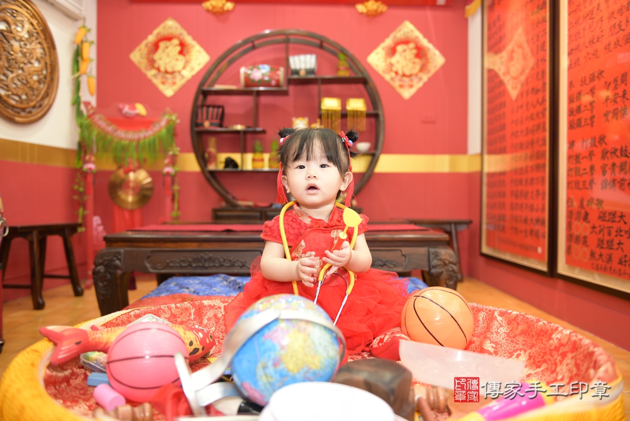 桃園市八德區吳寶寶抓周推薦:傳家桃園店抓周度脺中國風會場,嬰兒古禮抓周流程儀式吉祥話、抓周道具物品24種、拍照。抓周證書。2021.12.13